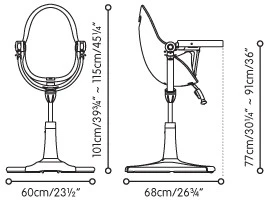 - pneumatische Höhenverstellung, mit der das Tablett auf verschiedene Höhen bis zu 91 cm eingestellt werden kann