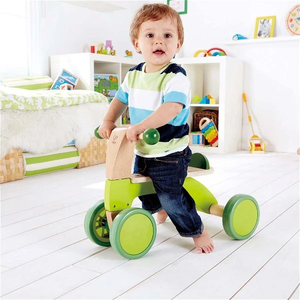 Aufsitzen und los geht es – in alle Richtungen. Der Begriff „Allradantrieb“ bekommt bei diesem fußbetriebenen Rutschrad eine ganz neue Bedeutung. Kurze Fahrten mit dem Rutschrad helfen Ihrem Kind dabei, Körperkoordination und Gleichgewichtsgefühl zu entwickeln. Je mehr Sicherheit es gewinnt, desto schneller kann es mit dem Hape Rutschrad unterwegs sein.