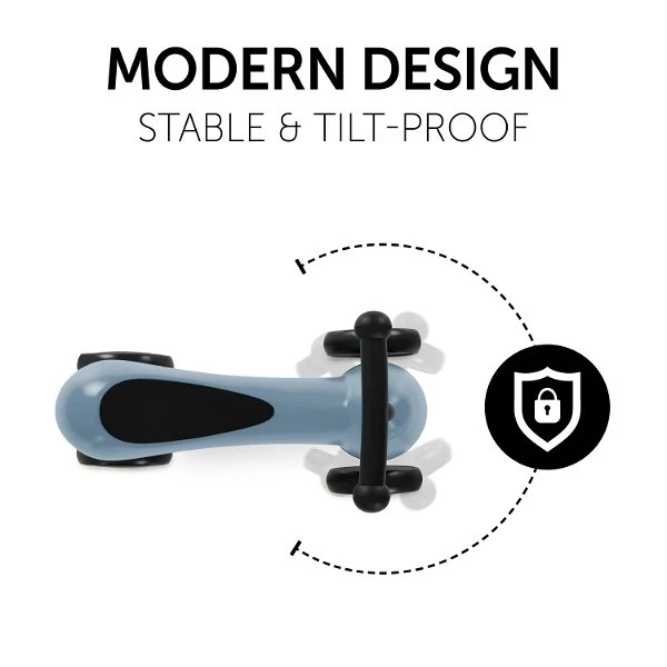 Die Sitzfläche ist weich gepolstert und bietet höchsten Komfort beim Fahren, während rutschfeste Griffe für Sicherheit beim rasanten Navigieren sorgen. Der niedrige Schwerpunkt des Rutschers macht das Auto kippsicher und die beidseitige Lenkereinschlagsbegrenzung erleichtert dem Kleinkind das Steuern in die richtige Richtung.