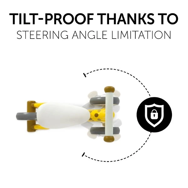 Die beidseitige Lenkereinschlagsbegrenzung erleichtert dem Kleinkind das Steuern in die richtige Richtung und verhindert das leichte Umkippen des Dreirades.