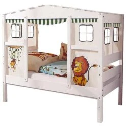 Ticaa Hausbett MINI Safari Kiefer Inkl. Bettkasten Weiß Massivholz – Dessin: Safari – 80 X 160 Cm