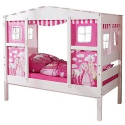 Ticaa Hausbett MINI Horse Rosa Kiefer Schubkästen Weiß Massivholz – Dessin: Horse Rosa – 80 X 160 Cm