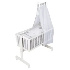 Schardt Multifunktionswiege 5 In 1 Buche Massiv Weiß Lackiert Mit Textiler Ausstattung Stern Grau