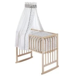 Schardt Multifunktionswiege 5 In 1 Buche Massiv Natur Mit Textiler Ausstattung Sternchen Grau