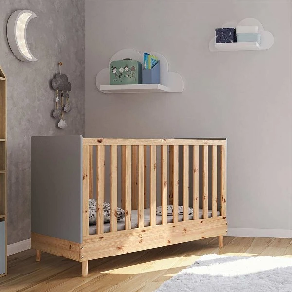 Nature Kid Linus Babybett natur/grau 70 x 140 cm 2in1 Baby- und Kinderbett