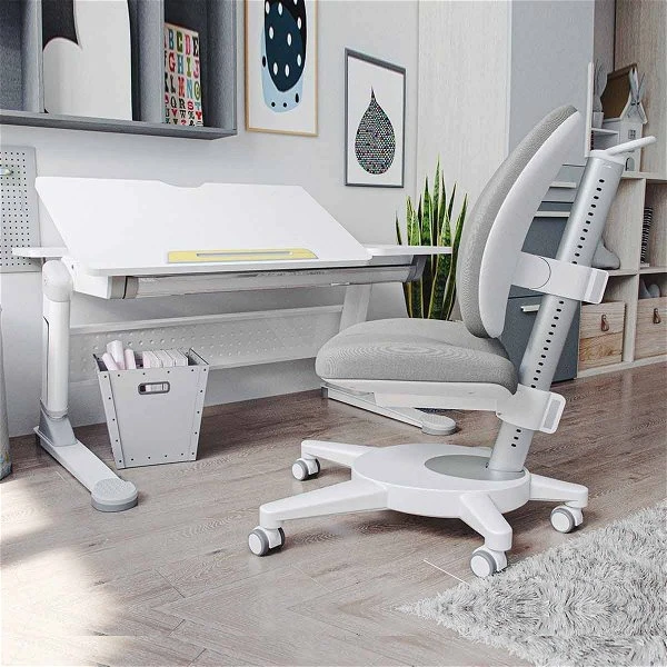 Der ergonomische Nature Kid Terra Schreibtisch ist besonders für Schulanfänger geeignet. Durch den großen Verstellbereich der Arbeitsplattenhöhe von 55 bis 75 cm wächst der Terra Schreibtisch von Anfang an mit Ihrem Kind mit. Auch die Ausstattung kann sich sehen lassen: die Arbeitsplatte ist dreigeteilt und der große, linke Teil lässt sich in mehreren Stufen schrägstellen und besitzt eine Dämpfung, damit sich die Platte beim verstellen langsam ansenkt. Die hintere und rechte Platte bleiben feststehend, hier können Stifte oder Papier liegen bleiben. Eine Schublade mit integrierter Stiftrinne sorgt für Ordnung und bietet viel Platz für alle Schreib- oder Malutensilien. An den vorderen Füßen des Terra Schreibtischs befinden sich Einsteller mit denen sich Bodenunebenheiten ausgleichen lassen.