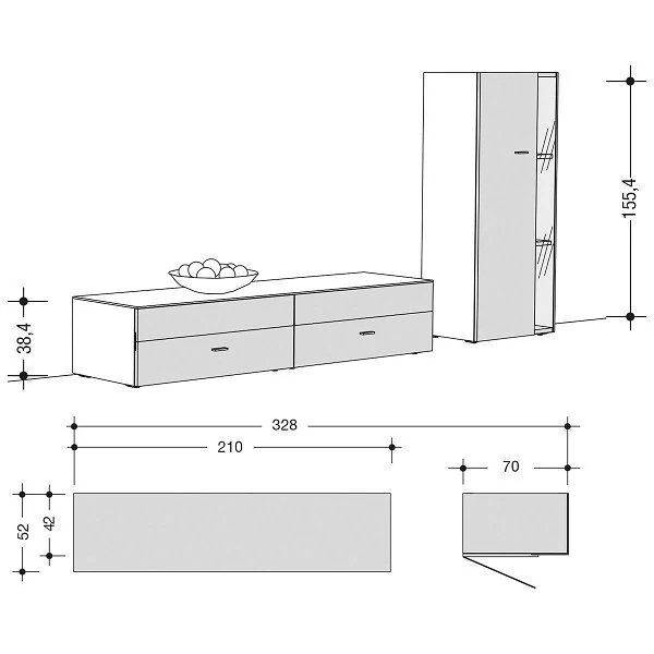 Gesamt: 155,4 x 328 x 52 cm (H x B x T)