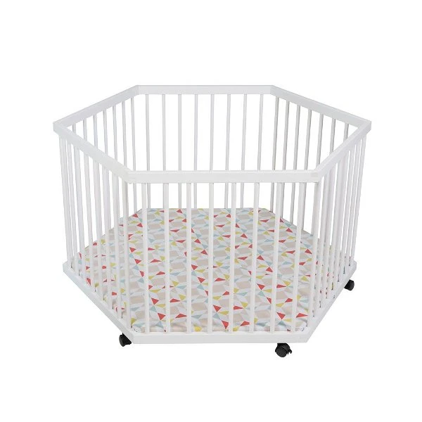 Mit der speziellen Sechseckform bietet das Laufgitter Solitär von Schardt eine optimale Spielfläche. Das aus massiver Kiefer gefertigte Gestell ist ausgesprochen funktionell und langlebig. Das Laufgitter ist mit 6 Rollen mit Feststellfunktion ausgestattet.Durch die hiermit gebotene Flexibilität können Sie Ihr Baby bequem von einem Zimmer zum anderen mitnehmen und wissen es so immer gut behütet. Der Boden des Laufgitters Solitär ist weich gepolstertet und zweifach höhenverstellbar. Durch die Folie ist der Boden auch leicht zu reinigen und somit ganz auf die Bedürfnisse eines Kleinkindes zugeschnitten.
