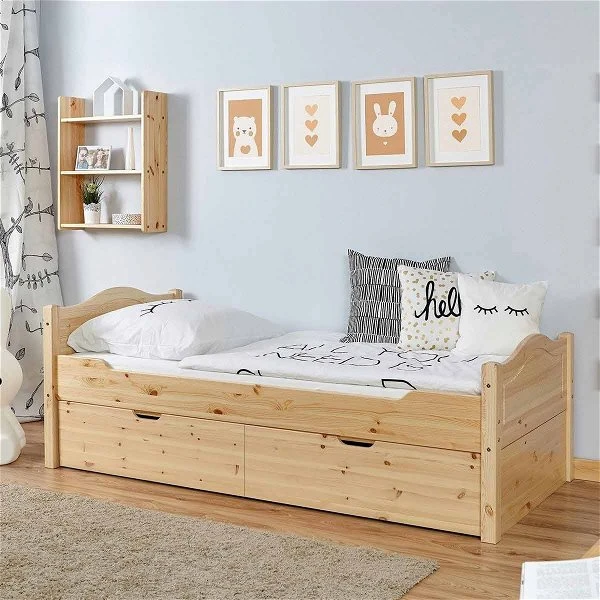 Ticaa Einzelbett Leni mit 2er Schubkästen Kiefer – 100×200 cm