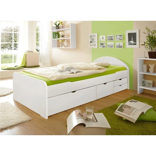 - Schubkastenbett Erna aus massivem Kiefernholz weiß