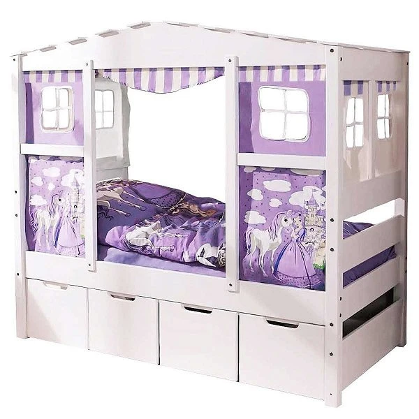 - Hausbett inkl. Vorhang, Rollrost, Matratze und Schubkästen