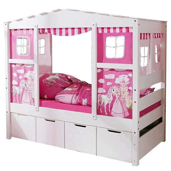 - Hausbett inkl. Vorhang, Rollrost, Matratze und Schubkästen