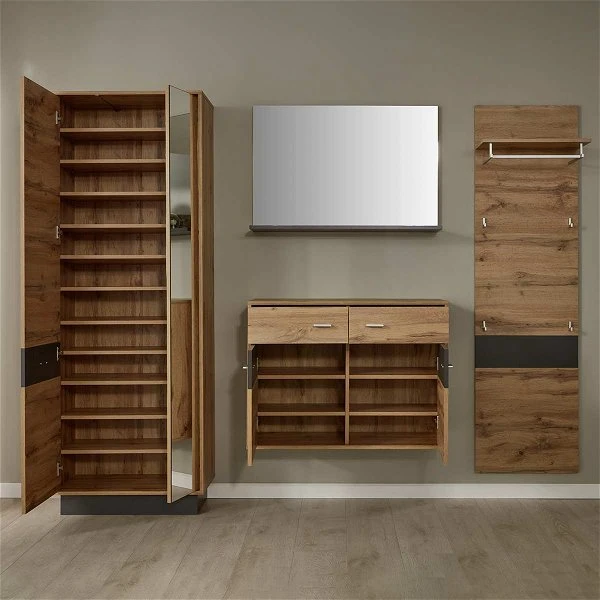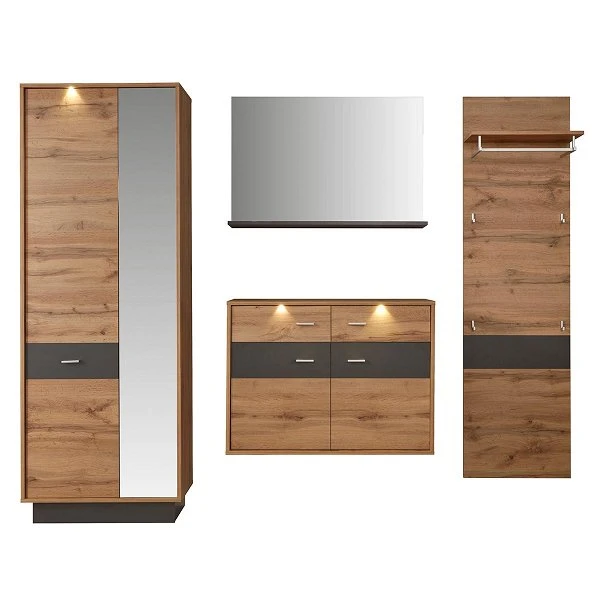 trendteam Coast Garderoben-Set 4-teilig inkl. Beleuchtung Wotan eiche / Grau Melamin