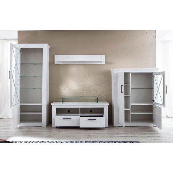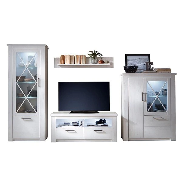 Die trendteam Georgia Anbauwand ist eine stilsichere Lösung für jede Menge Platz zum Verstauen. Die verwendete Dekorfolie verleiht der Oberfläche Beständigkeit. Der Korpus im Pinie Weiß Dekor schafft ein zeitgemäßes Design, das sich harmonisch in den Raum integriert.