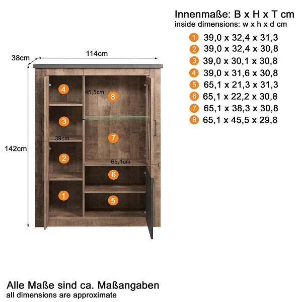 - Maße B/H/T: 114 / 142 / 38 cm