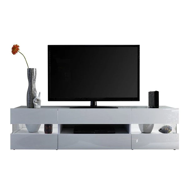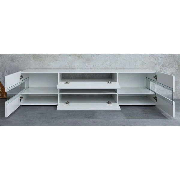 Das trendteam Sonic Lowboard ergänzt Ihre Einrichtung um ein angesagtes Highlight. Das mittelgroße Lowboard sorgt für genügend Stauraum, während es gleichermaßen nicht zu viel Stellfläche einnimmt. Die verwendete Dekorfolie in Verbindung mit Melamin verschafft der Oberfläche Beständigkeit. Die weiße Front- und Korpusgestaltung schafft ein modernes Design, das sich harmonisch in den Raum integriert.