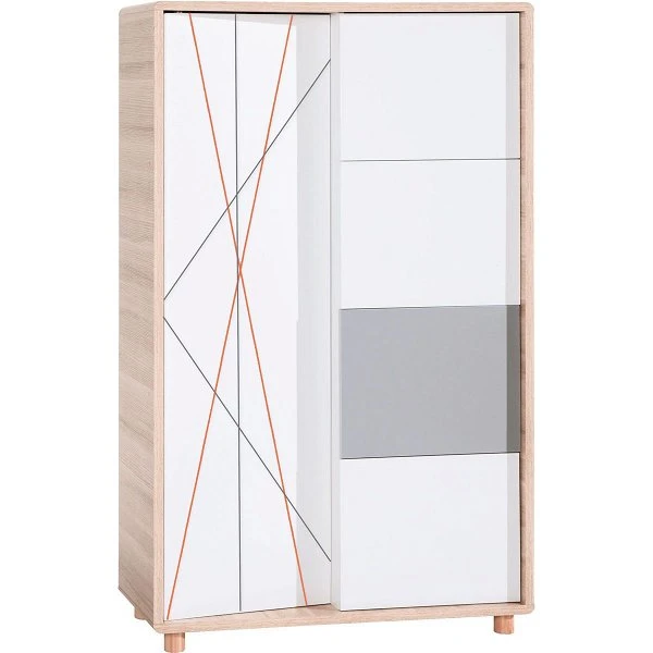 Die VOX Evolve Kommode hoch verfügt übe eine Tür die mit Gummibändern zum Aufhängen von Fotos oder Bilder ausgestattet ist. Praktischer Stauraum mit Einlegeböden in verstellbarer Höhe. 4 leichtgängige Schubladen. Die Tür und Schubladen öffnen sich durch einem leichten Druck.