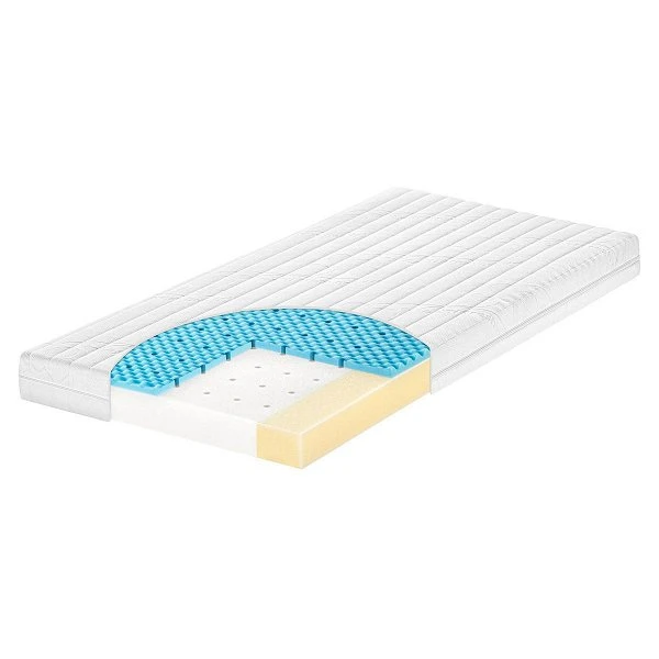 Die zweischichtige Babymatratze Jona bietet hervorragenden Schlafkomfort durch den Einsatz einer mittelweichen Babyseite aus Kaltschaum mit Noppenprofil und einer stabilen Kleinkindseite aus Kaltschaum.